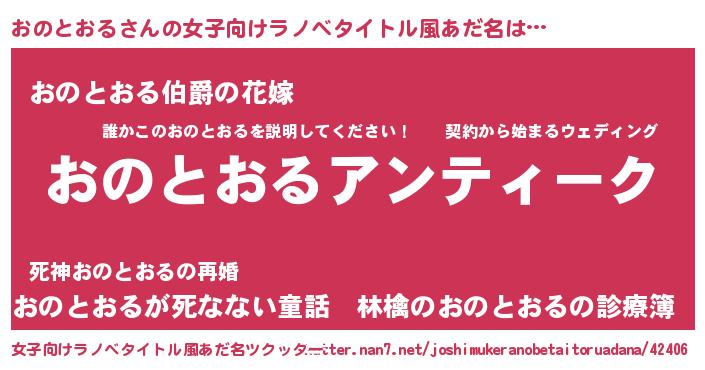 男性向けラノベタイトル風あだ名 | 『魔法科高校のおのとおる』 |