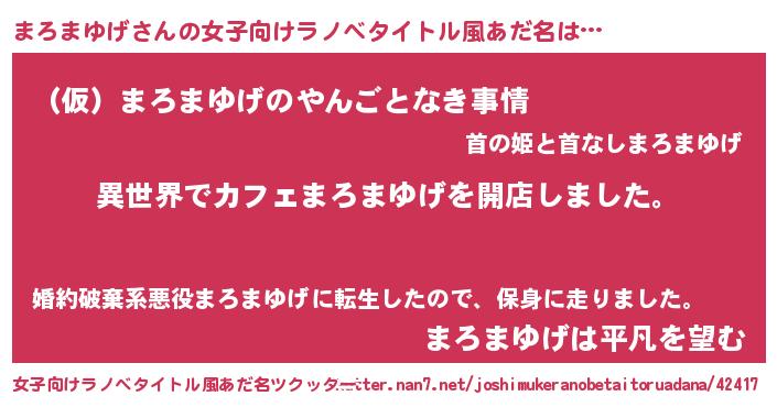 | 男性向けラノベタイトル風あだ名 | 『誰もが恐れるあのまろまゆげが、ぼくの専属メイドになるようです。』 |