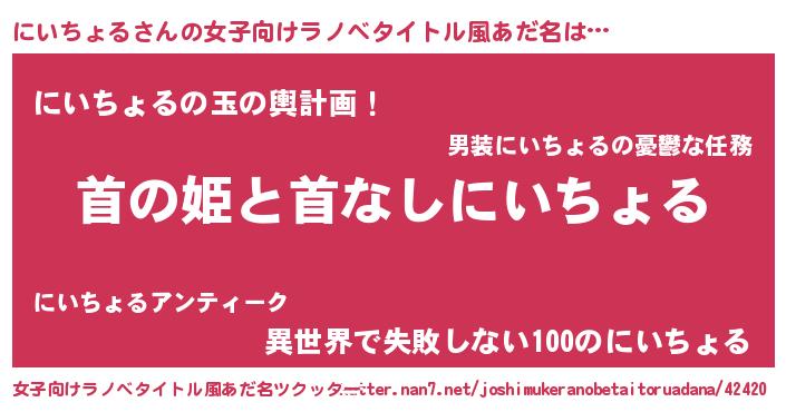 | ピコ太郎風あだ名 | 『ピコニ郎』『ニイ次郎』『ピニ次郎』 |