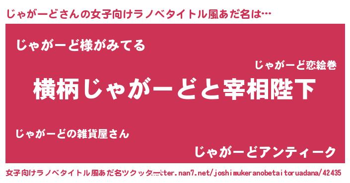 | 男性向けラノベタイトル風あだ名 | 『じゃがーどに滅ぼされるだけの簡単なお仕事です』 |