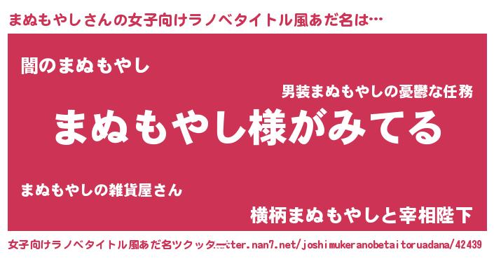 | 男性向けラノベタイトル風あだ名 | 『まぬもやしの嫁は女の子じゃないと思った?』 |