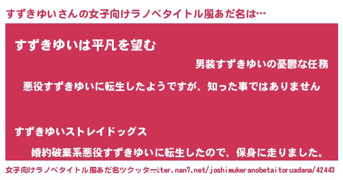 | 男性向けラノベタイトル風あだ名 | 『この素晴らしい世界にすずきゆいを!』 |