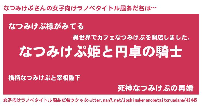 | 欧米人風あだ名 | 『マイケルなつみけぷ』 |