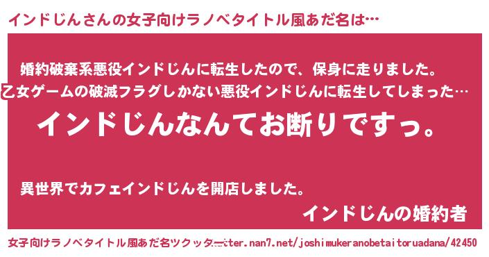 | 意味不明あだ名 | 『自称インドじん』『永久保存インドじん』 |