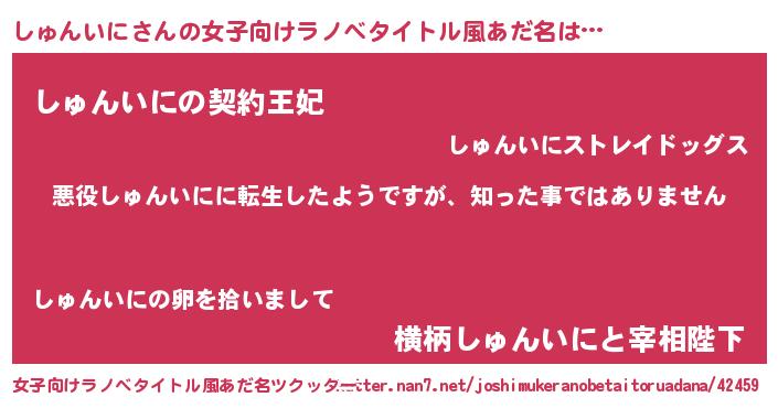 | 意味不明あだ名 | 『住所不定無職しゅんいに(79歳)』 |