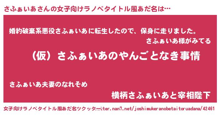 | 男性向けラノベタイトル風あだ名 | 『さふぁいあの憂鬱』 |