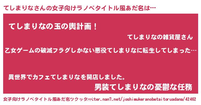 | 男性向けラノベタイトル風あだ名 | 『この素晴らしい世界にてしまりなを!』 |