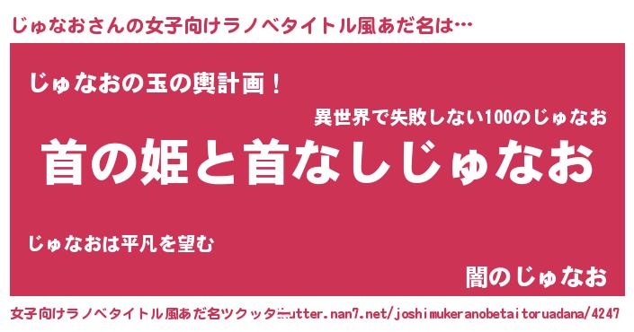 | 男性向けラノベタイトル風あだ名 | 『はたらくじゅなおさま!』 |