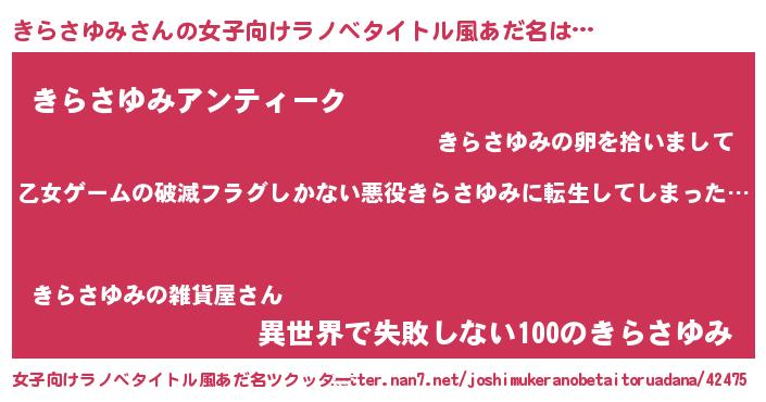 | 意味不明あだ名 | 『住所不定無職きらさゆみ(89歳)』 |