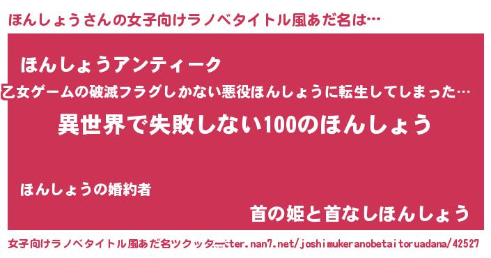 | 胡散臭い通販商品みたいなあだ名 | 『絶対に幸福をもたらす健康食品…その名も「ほんしょう」』 |