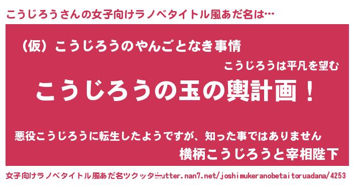 | 肩書あだ名 | 『こうじろう中将』『こうじろう社長』 |