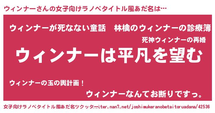 | 男性向けラノベタイトル風あだ名 | 『ダンジョンにウィンナーを求めるのは間違っているだろうか』 |