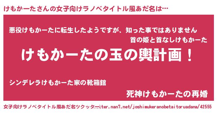 | ヒーロー風カッコイイあだ名 | 『仮面ケモダー』『慈愛の使者けもかーた』 |