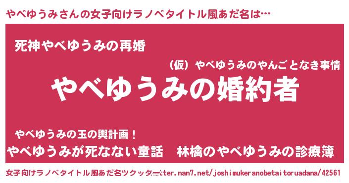 | 意味不明あだ名 | 『やべゆうみフォーエバー』 |