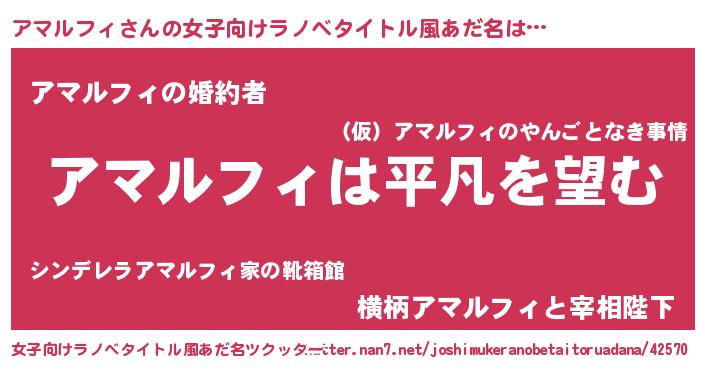 | 胡散臭い通販商品みたいなあだ名 | 『信頼と実績のサプリメント…その名も「アマルフィ」』 |