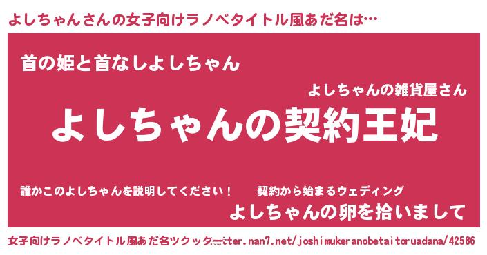 | ヘコむあだ名 | 『よしちゃん(苦笑)』『よしっ子』 |