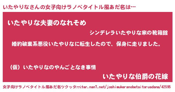 | 男性向けラノベタイトル風あだ名 | 『イタヤリナスレイヤー』 |