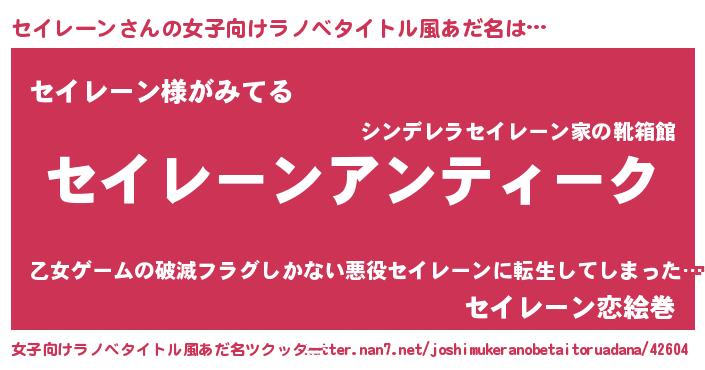 | 意味不明あだ名 | 『自称セイレーン』『永久保存セイレーン』 |