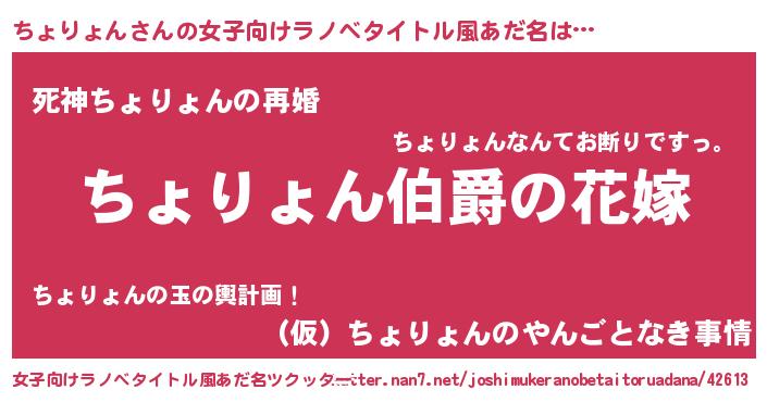 | 欧米人風あだ名 | 『ちょりょんクリステル』 |