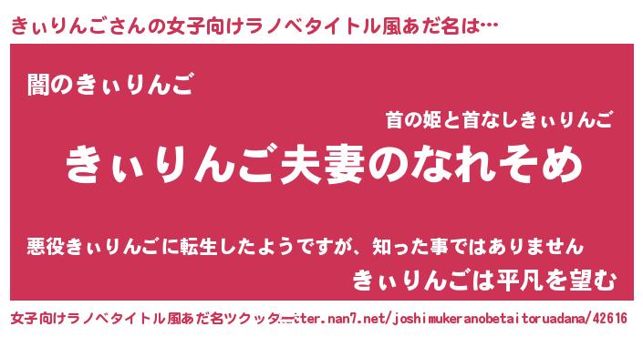 | 男性向けラノベタイトル風あだ名 | 『おまえをオタクにしてやるから、俺をきぃりんごにしてくれ! 』 |