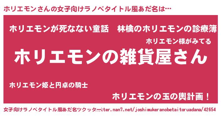| ファンタジー風あだ名 | 『エターナルホリエモンー』『ホリフェル』 |