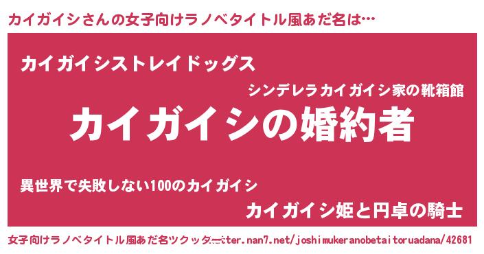 | 恥ずかしいあだ名 | 『カイっちょ』『カイガイシデラックス』 |