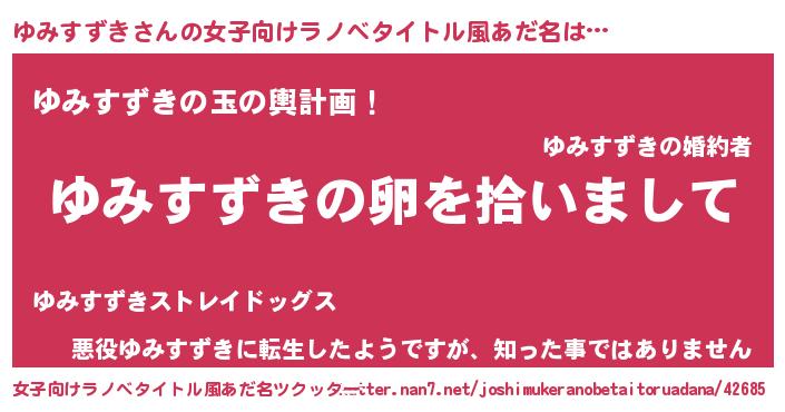 | ファンタジー風あだ名 | 『ファントムユミス』『ユリユミヴァット』 |