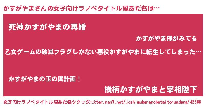 | 男性向けラノベタイトル風あだ名 | 『魔弾の王とかすがやま』 |