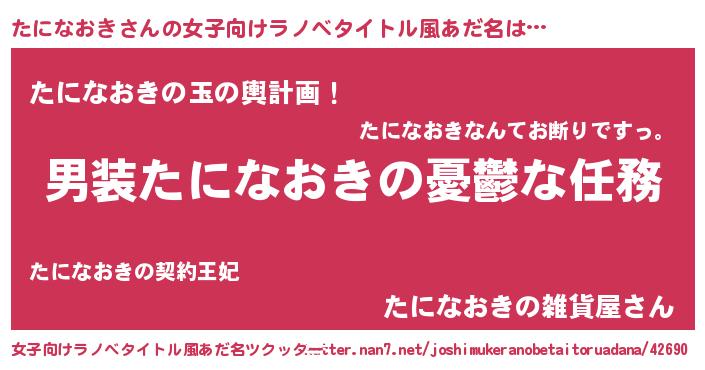 | 男性向けラノベタイトル風あだ名 | 『うちのたになおきが世界を掌握している!』 |