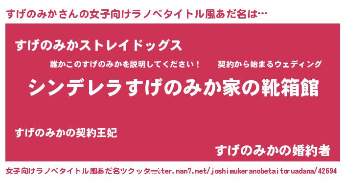 | 男性向けラノベタイトル風あだ名 | 『緋弾のスゲノミカ』 |