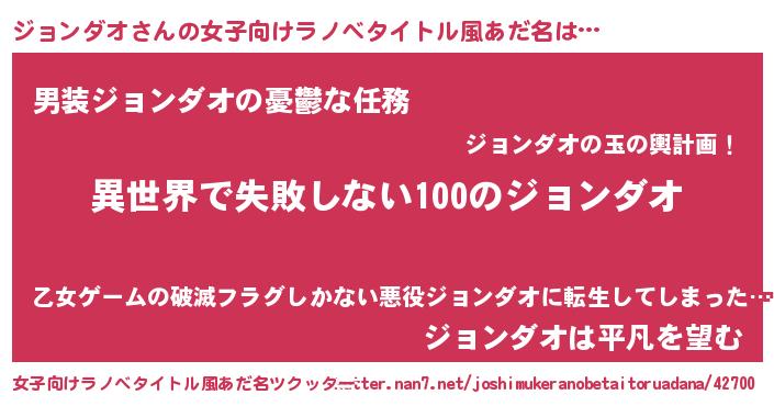 | 意味不明あだ名 | 『永久保存ジョンダオ』 |