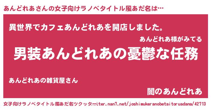 | 男性向けラノベタイトル風あだ名 | 『うちのあんどれあが世界を掌握している!』 |