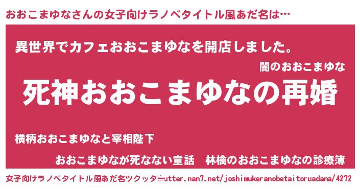 | 男性向けラノベタイトル風あだ名 | 『ノーゲーム・ノーオオコマユナ』 |