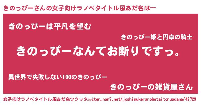 | 男性向けラノベタイトル風あだ名 | 『魔法科高校のきのっぴー』 |