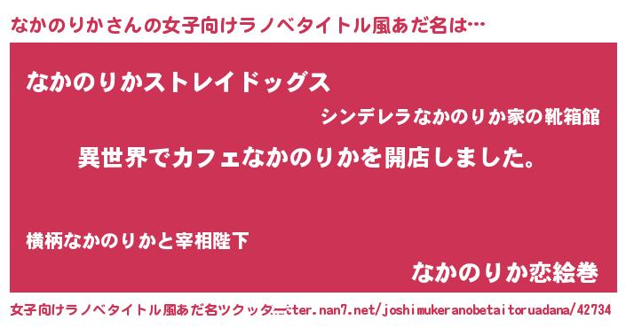 | 男性向けラノベタイトル風あだ名 | 『誰もが恐れるあのなかのりかが、ぼくの専属メイドになるようです。』 |