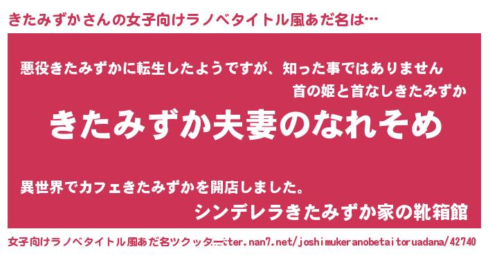 | 男性向けラノベタイトル風あだ名 | 『おまえをオタクにしてやるから、俺をきたみずかにしてくれ! 』 |
