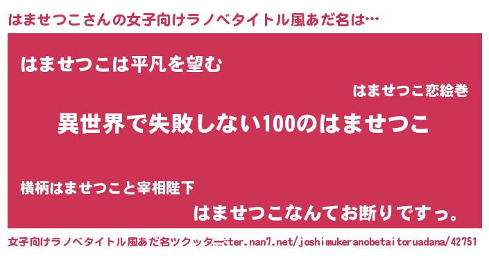 | 男性向けラノベタイトル風あだ名 | 『はませつこという概念が存在しない退屈な世界 』 |