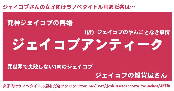 | 男性向けラノベタイトル風あだ名 | 『魔法科高校のジェイコブ』 |