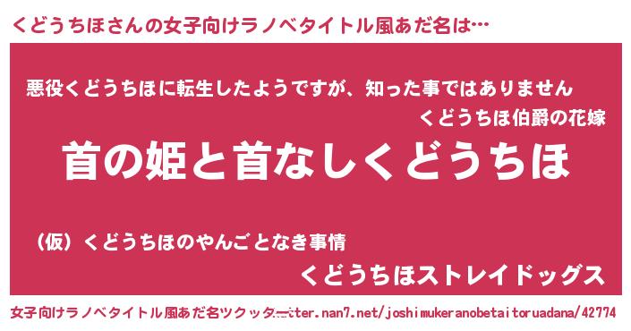 | ヒーロー風カッコイイあだ名 | 『仮面クドダー』『最強戦士クドウチホ』 |