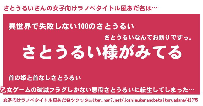 | 意味不明あだ名 | 『とにかく怪しいさとうるい』 |