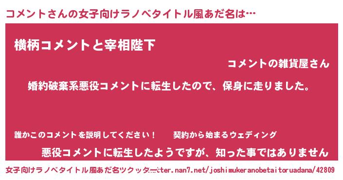 | 胡散臭い通販商品みたいなあだ名 | 『世界中を虜にした世界で10本だけ現存している希少なブランデー…その名も「コメント」』 |