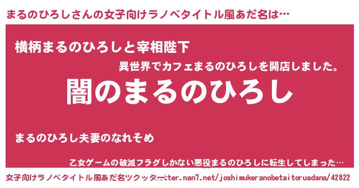 | 男性向けラノベタイトル風あだ名 | 『Re:まるのひろしから始める異世界生活』 |