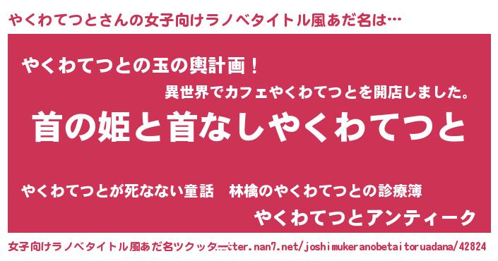 | 欧米人風あだ名 | 『アンジェラ・やくわてつと』 |