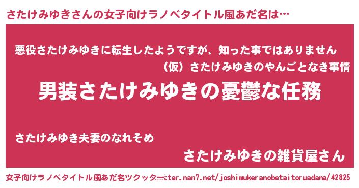 | 意味不明あだ名 | 『住所不定無職さたけみゆき(43歳)』 |
