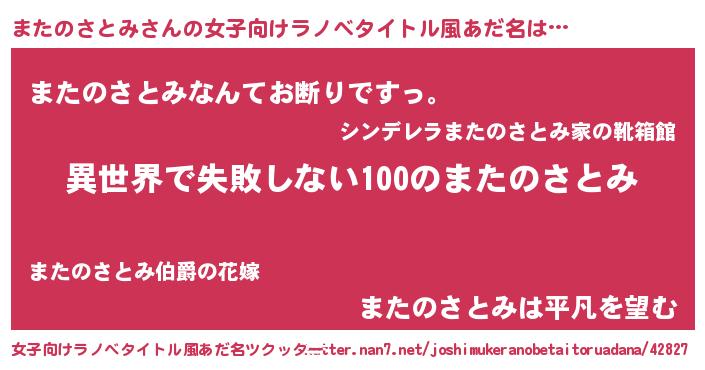 | 男性向けラノベタイトル風あだ名 | 『またのさとみという概念が存在しない退屈な世界 』 |