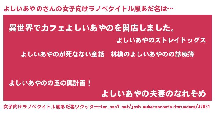 | ヘコむあだ名 | 『よしいあやの(遠い目)』『よしを』 |