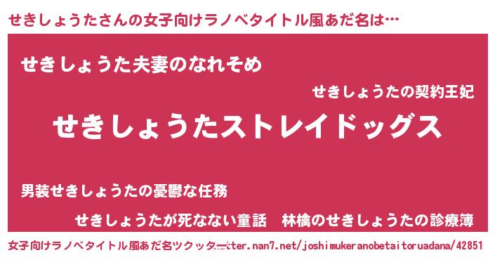 | 男性向けラノベタイトル風あだ名 | 『Re:せきしょうたから始める異世界生活』 |