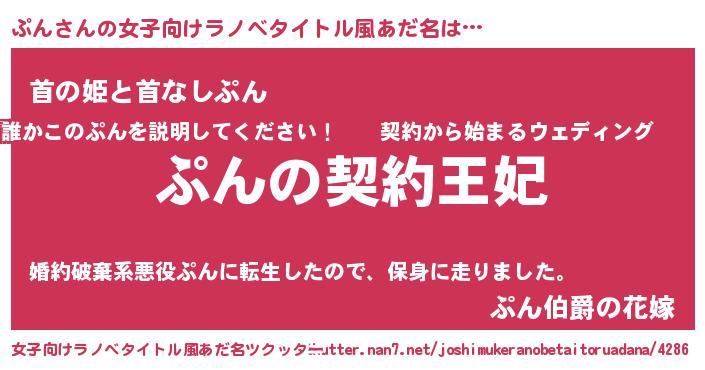 | 胡散臭い通販商品みたいなあだ名 | 『来世でも幸せになれる水素水…その名も「ぷん」』 |
