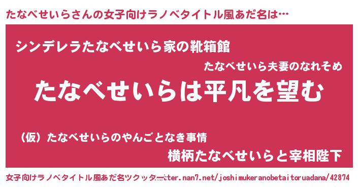 | 男性向けラノベタイトル風あだ名 | 『ダンジョンにたなべせいらを求めるのは間違っているだろうか』 |