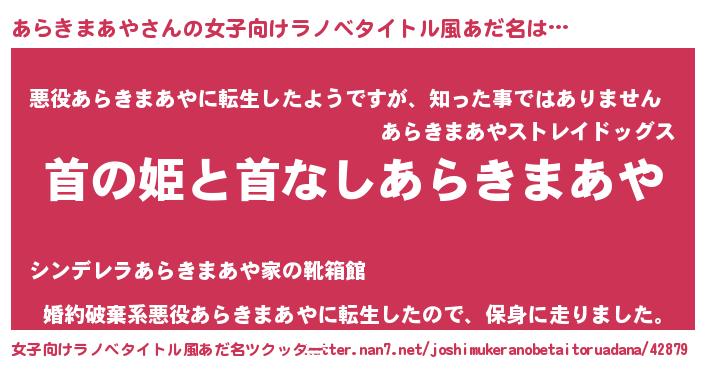 | 意味不明あだ名 | 『住所不定無職あらきまあや(79歳)』 |